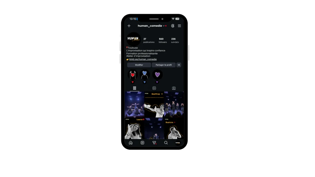 Human Comédie est une troupe d’improvisation qui a fait appel à nous afin de mettre en place une stratégie de communication et de marketing, à la fois en BtoB et en BtoC. L’enjeu principal du projet était de réussir à toucher ces deux cibles sans en négliger une, tout en conservant une cohérence globale.